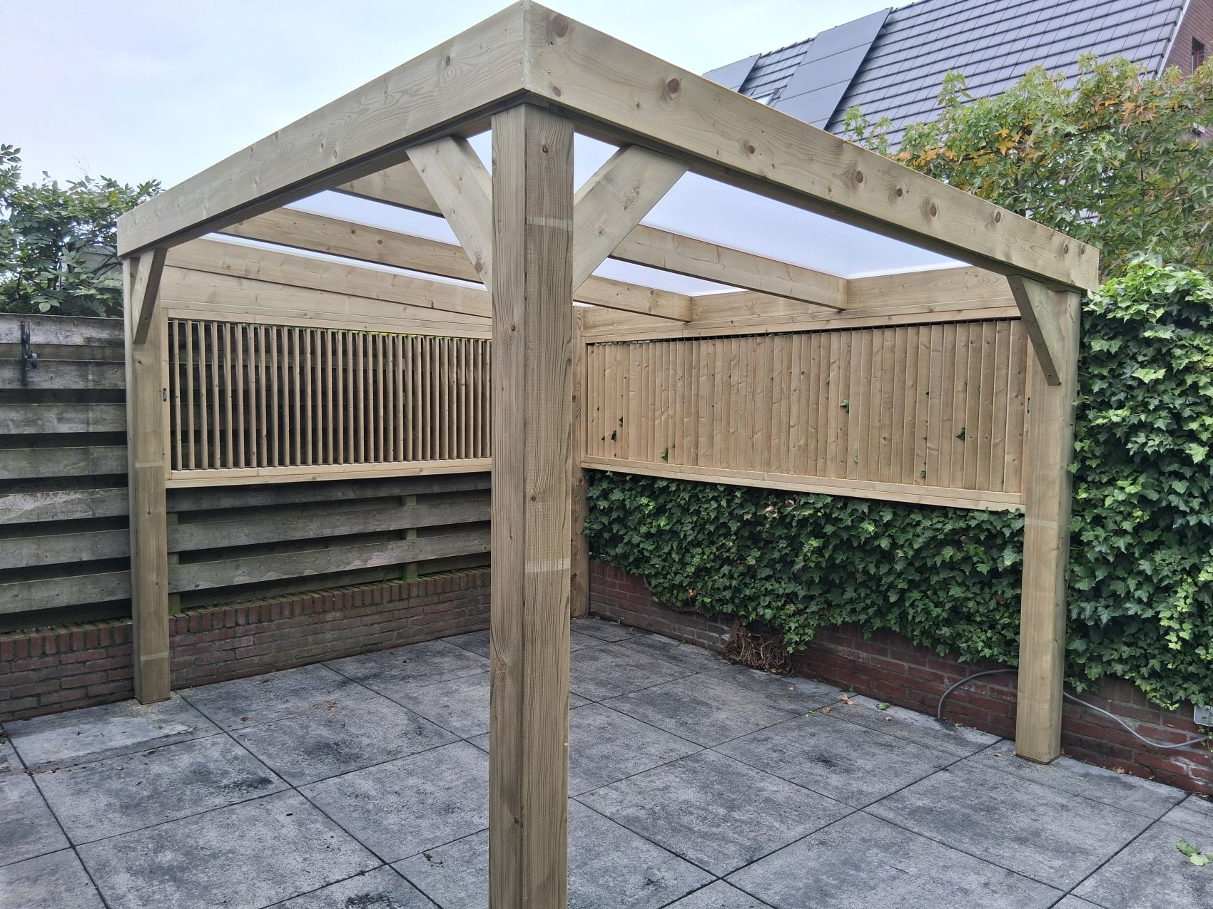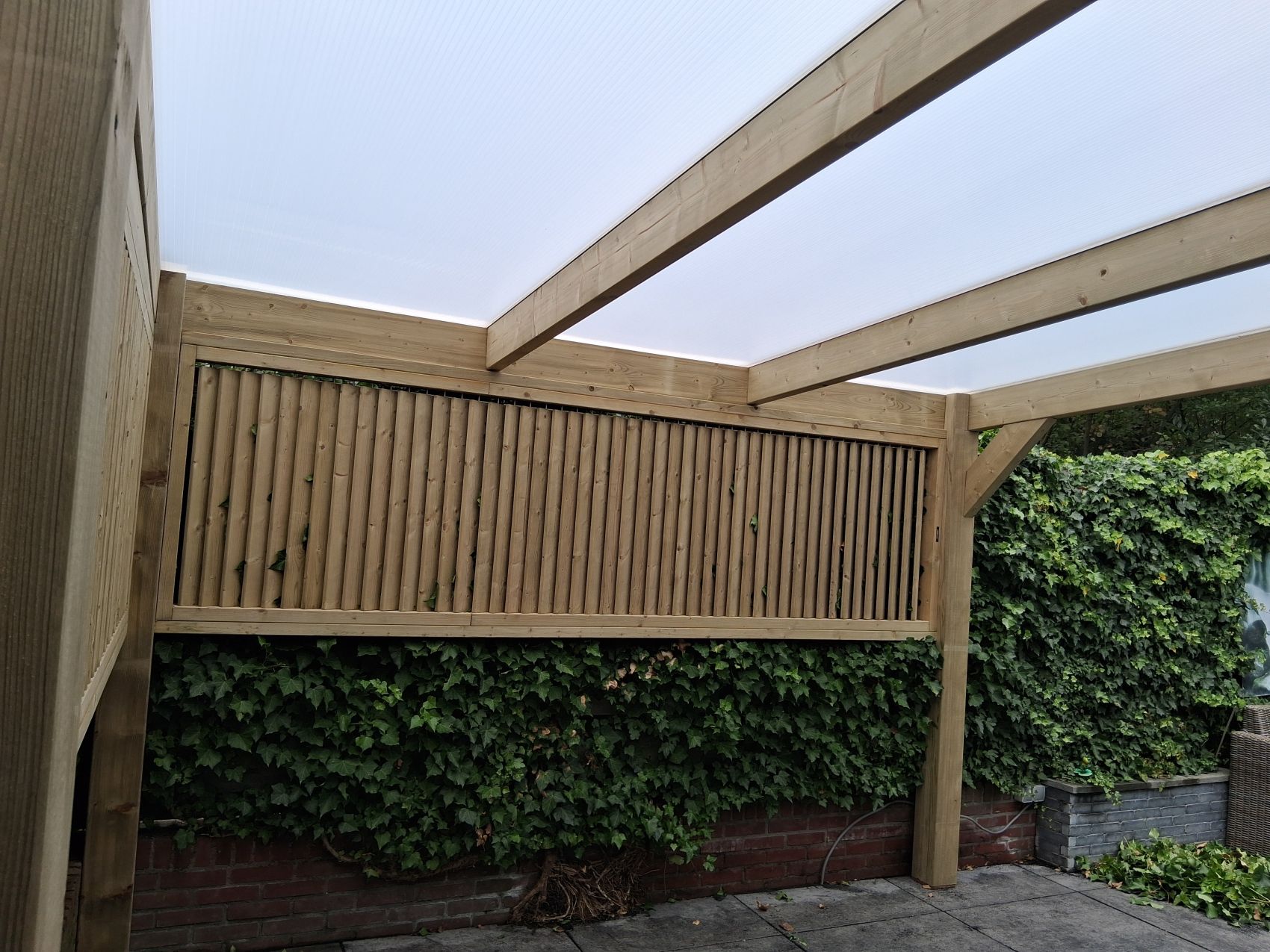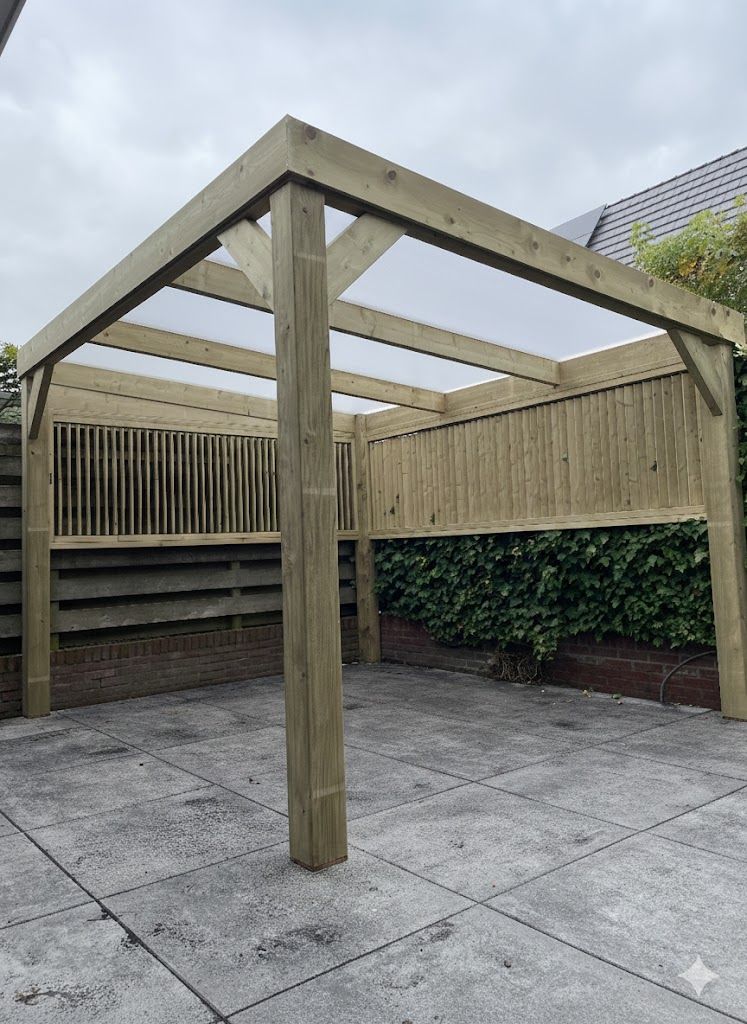 Lichtdoorlatende Dakplaten: Het dak wordt voorzien van hoogwaardige lichtdoorlatende platen. Dit garandeert dat uw terras en de achterliggende woning niet onnodig donker worden, terwijl u toch volledig beschermd bent tegen regen.